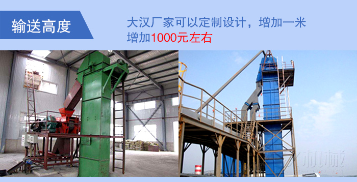 大漢鏈斗式提升機可以按照用戶的輸送高度要求設(shè)計,一般情況下,增加一米,鏈斗式提升機價格就會增加1000元左右。