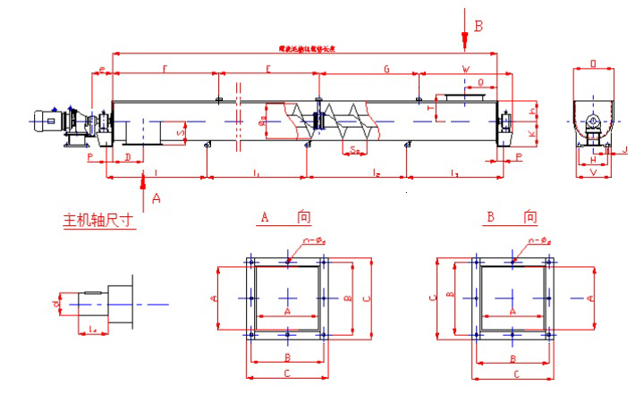 LS型螺旋輸送機是按照JB/T679-95《螺旋輸送機》標準設計制造,是GX型螺旋輸送機的換代產品。頭部及尾部軸承移至殼體外,吊軸承采用滑動軸承,沒有防塵密封裝置,軸瓦一般采用粉末冶金,輸送水泥采用毛氈軸瓦,吊軸和螺旋軸采用滑塊連接,拆卸螺旋時,不用移動驅動裝置,拆卸吊軸承時不用移動螺旋,不拆卸蓋板可以潤滑吊軸承,整機可靠性高,壽命長,適應性強,安裝維修方便。